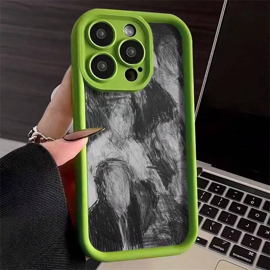 1pc Fluorescent Green Crowd With Accurate Camera Hole Extra Thick Anti-Fall Tpu Soft Phone Case For Iphone 7 /8 /11 /12 /13 /14 /15 /X /Xr /Xs /Pius /Pro /Pro Max /Se2