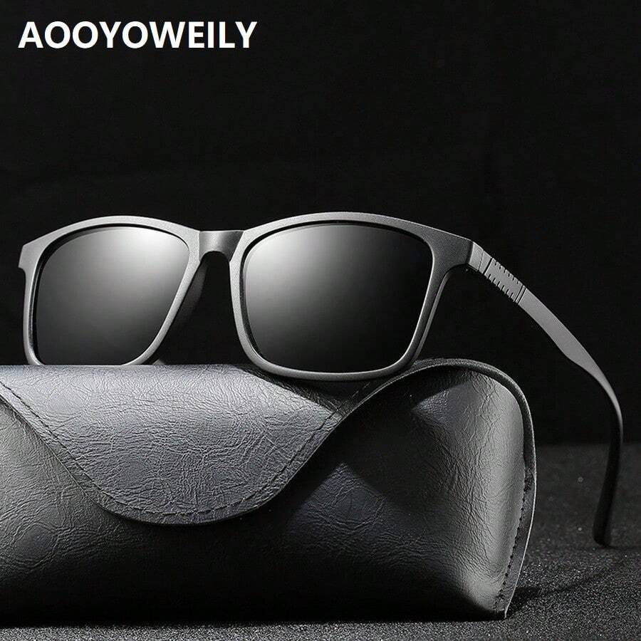 A Pair Of Black Fashionable Classic Retro Square Polarized Sunglasses With Ultra-Light Tr90 Frame, Luxurious Designer Brand Glasses, Unisex Classic Driver, Fishing, Cycling, Motorcycle Riding, Shopping, Traveling Anti-Glare Sunglasses, Black, Ice Blue, Mercury Coated Lenses, Uv400 Protection Sunglasses