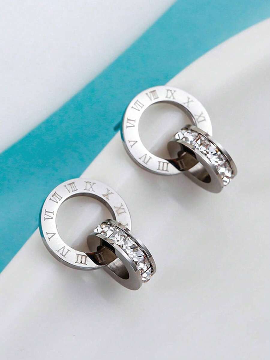 A Pair Of New Creative Earrings With Diamonds Rose Gold Titanium Steel Earrings Women'S Double Ring Pop Earrings