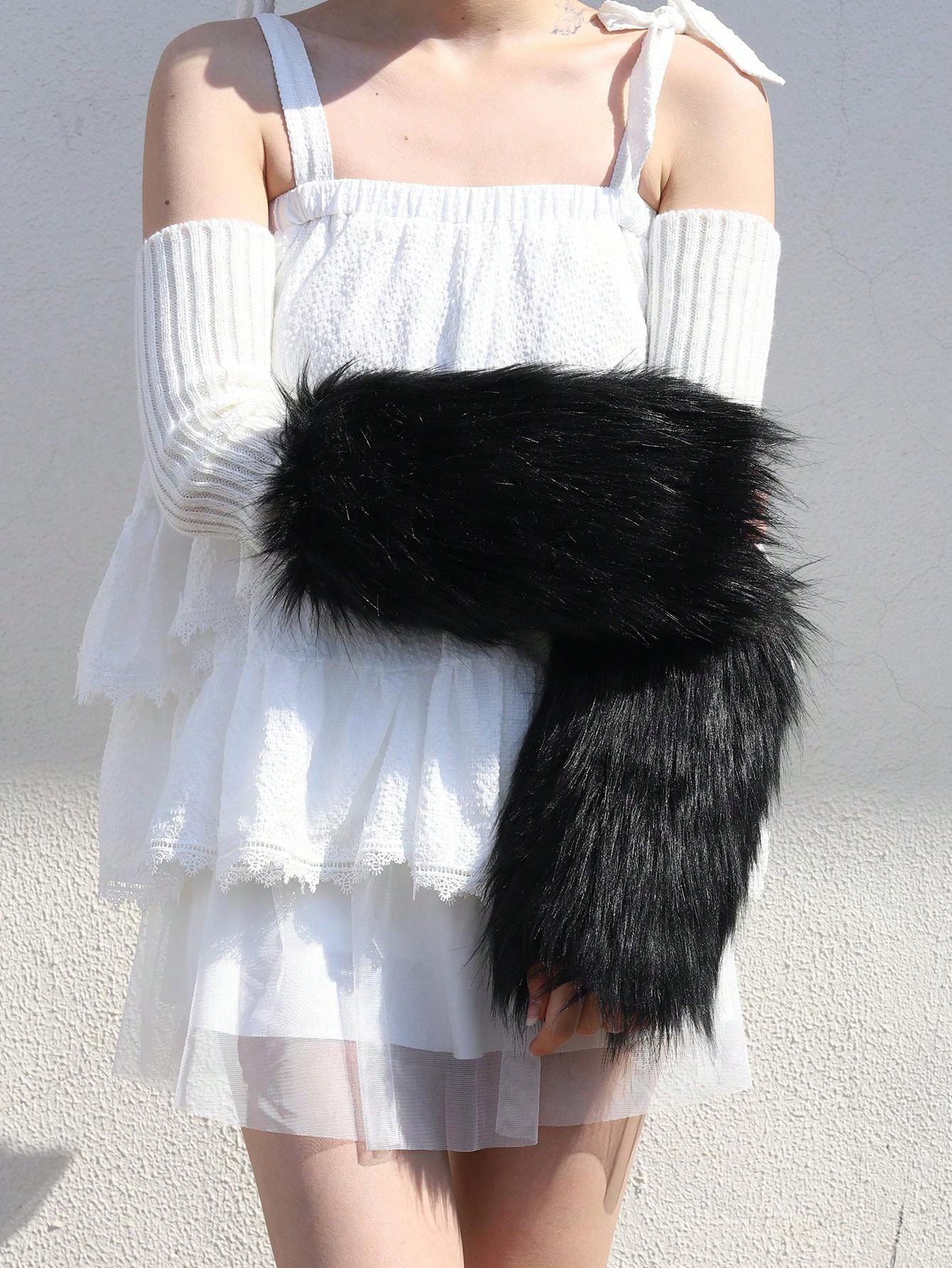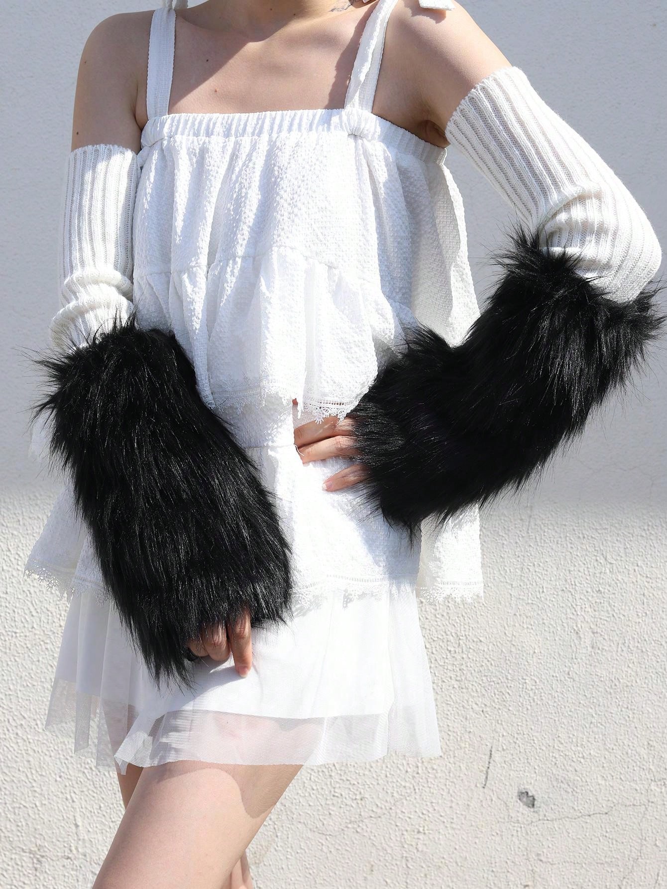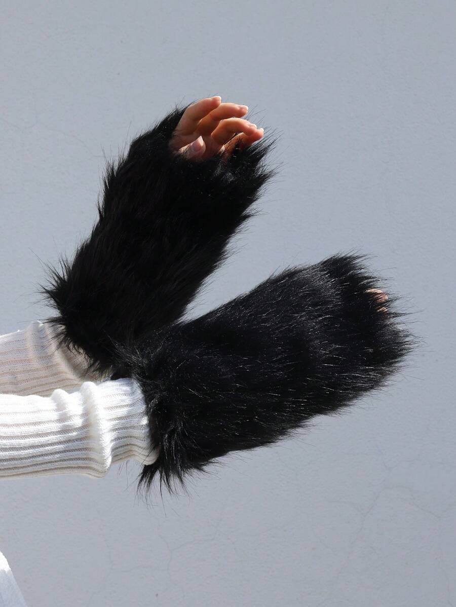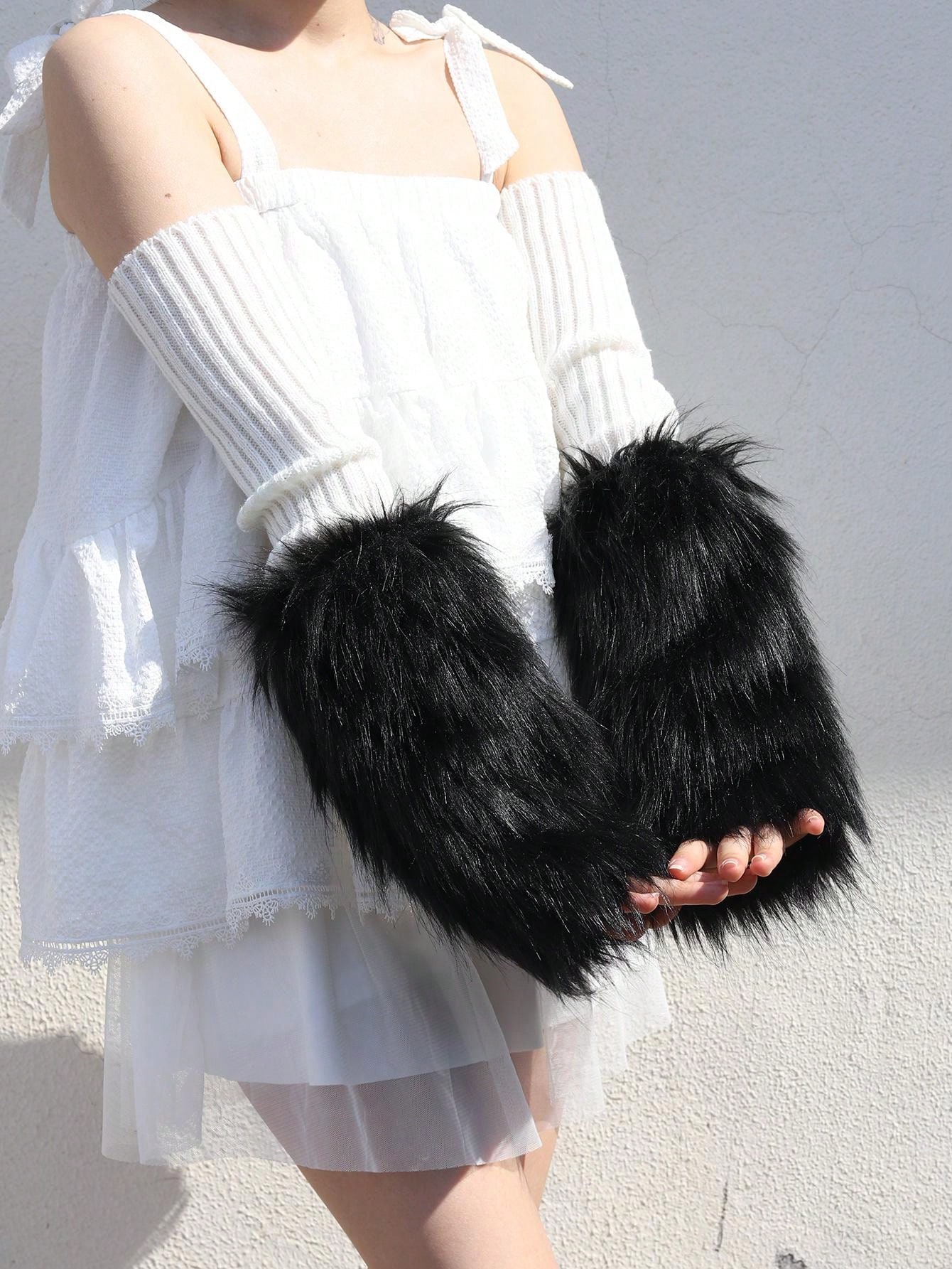 A Pair Of Women'S Simulated Fur Decorated Personalized Versatile Arm Covers Suitable For Daily Use