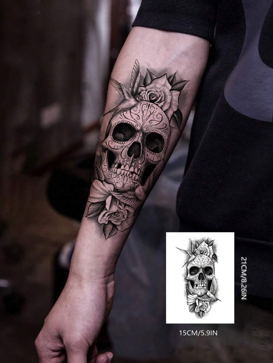 A Piece Of Halloween And Christmas Themed Fashion Tattoo Sticker With A Skull