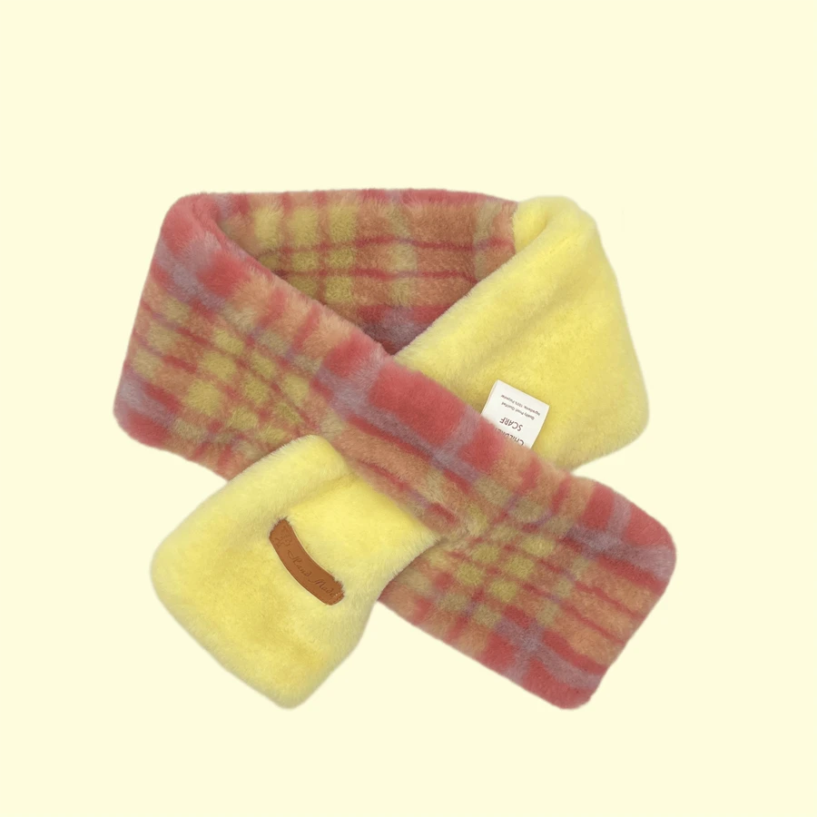A Piece Of Polar Fleece Children'S Portable Cross Scarf, Classic Plaid Solid Color Double-Piece Warm Neck Warmer For Male And Female Babies, Festive Atmosphere Decorative Gift