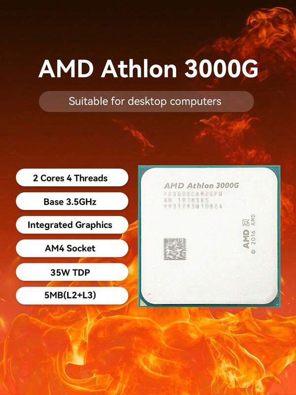 AMD Athlon 3000G 3.5GHz Base Clock 2-Core 4-Thread Desktop Processor CPU, AM4 Socket, Integrated Graphics, Suitable for office and entertainment PC, No Heatsink Fan,