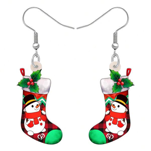 Acrylic Funny Colorful Christmas Santa Stocking Earrings Dangle Drop Novelty Famliy Holiday Decor For Women Girls Kids Chram Gifts Ornaments
