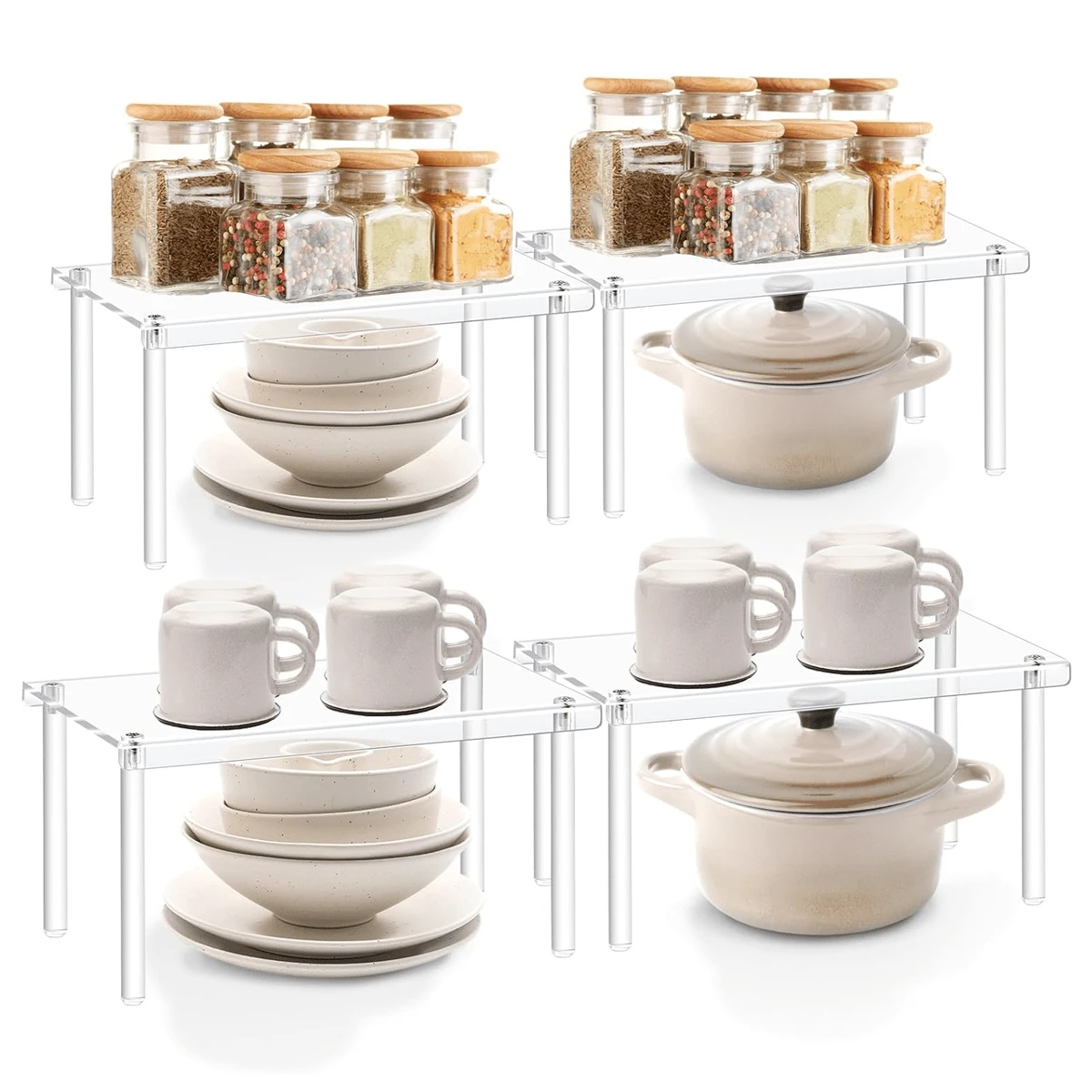 Acrylic Spice Rack, Stackable Cabinet Organizer, Suitable For Kitchen Storage, Spice Rack, Cabinet Countertop, Transparent Display Rack, Divider Rack For Cups, Plates