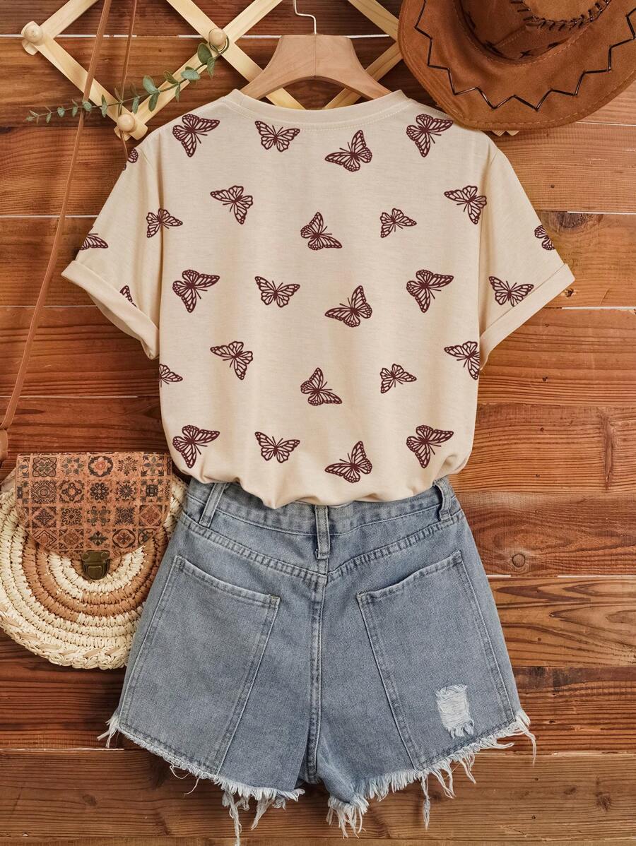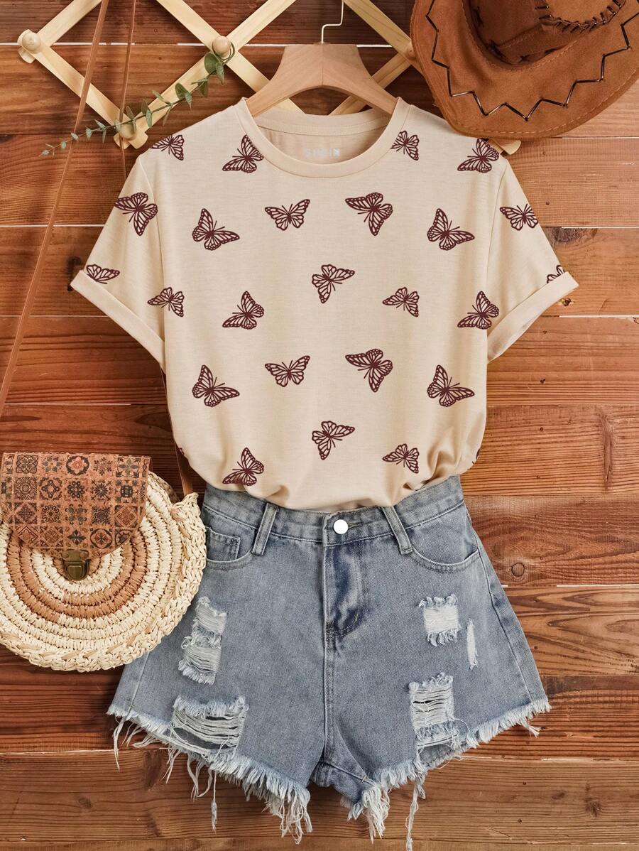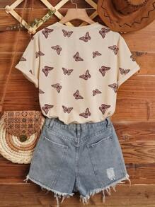 SHEIN LUNE All Over Butterfly Print Tee