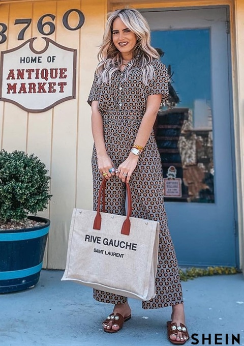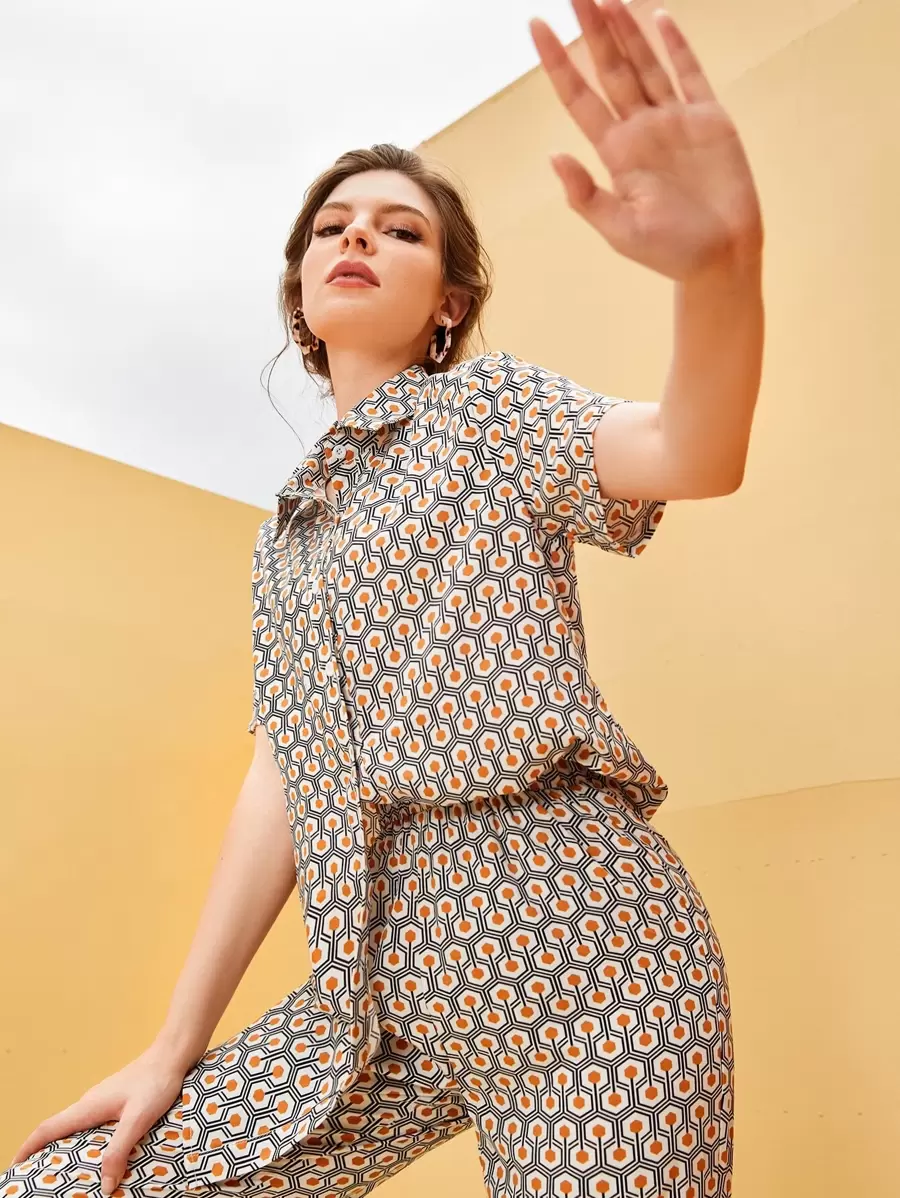 SHEIN Mulvari All Over Print Button Up Blouse & Pants