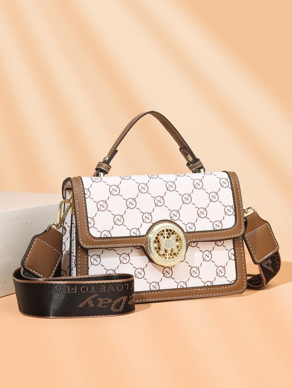 All Over Print Square Bag Metal Decor Top Handle For Daily