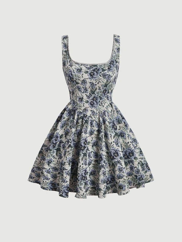 SHEIN MOD Allover Floral Print Zip Back Dress