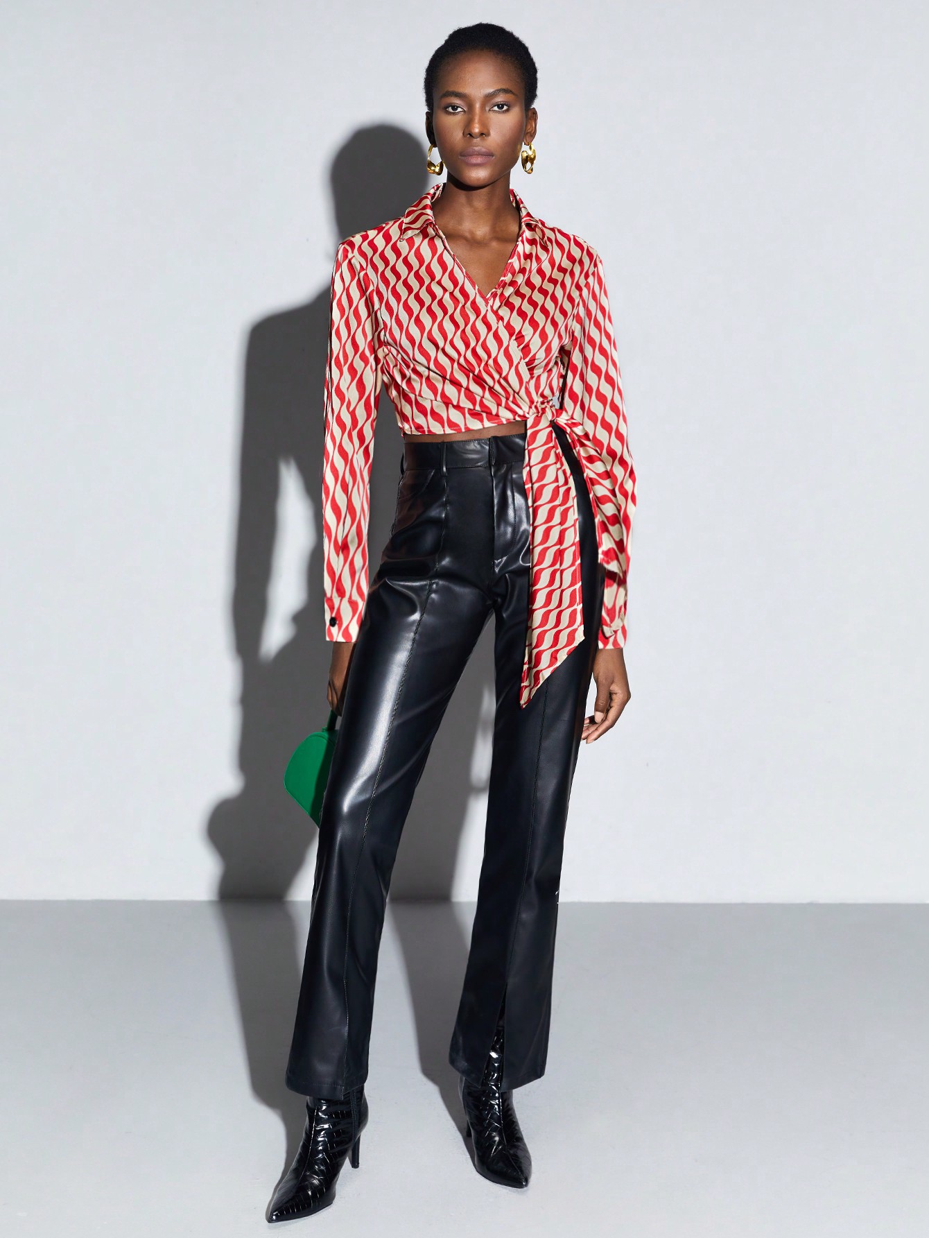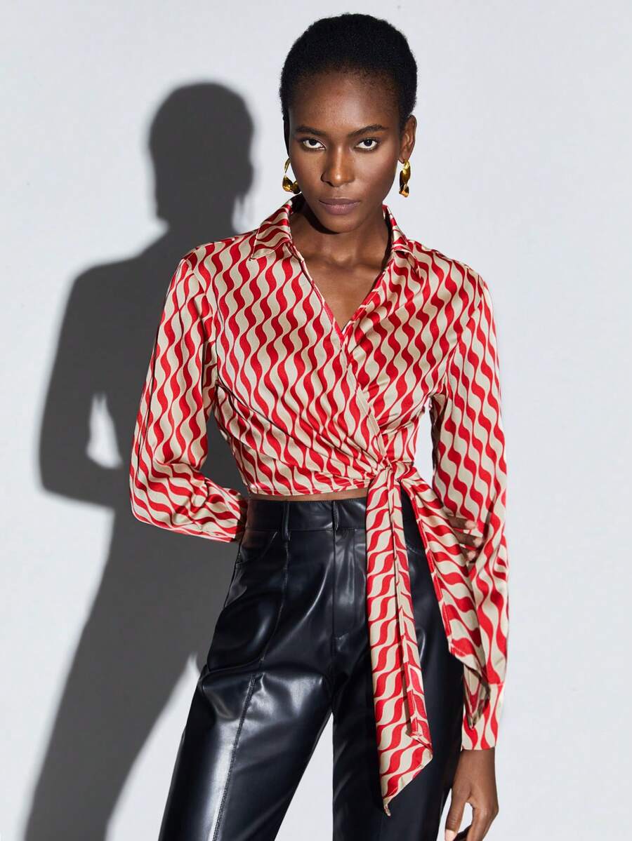 SHEIN BIZwear Allover Print Knot Side Wrap Blouse