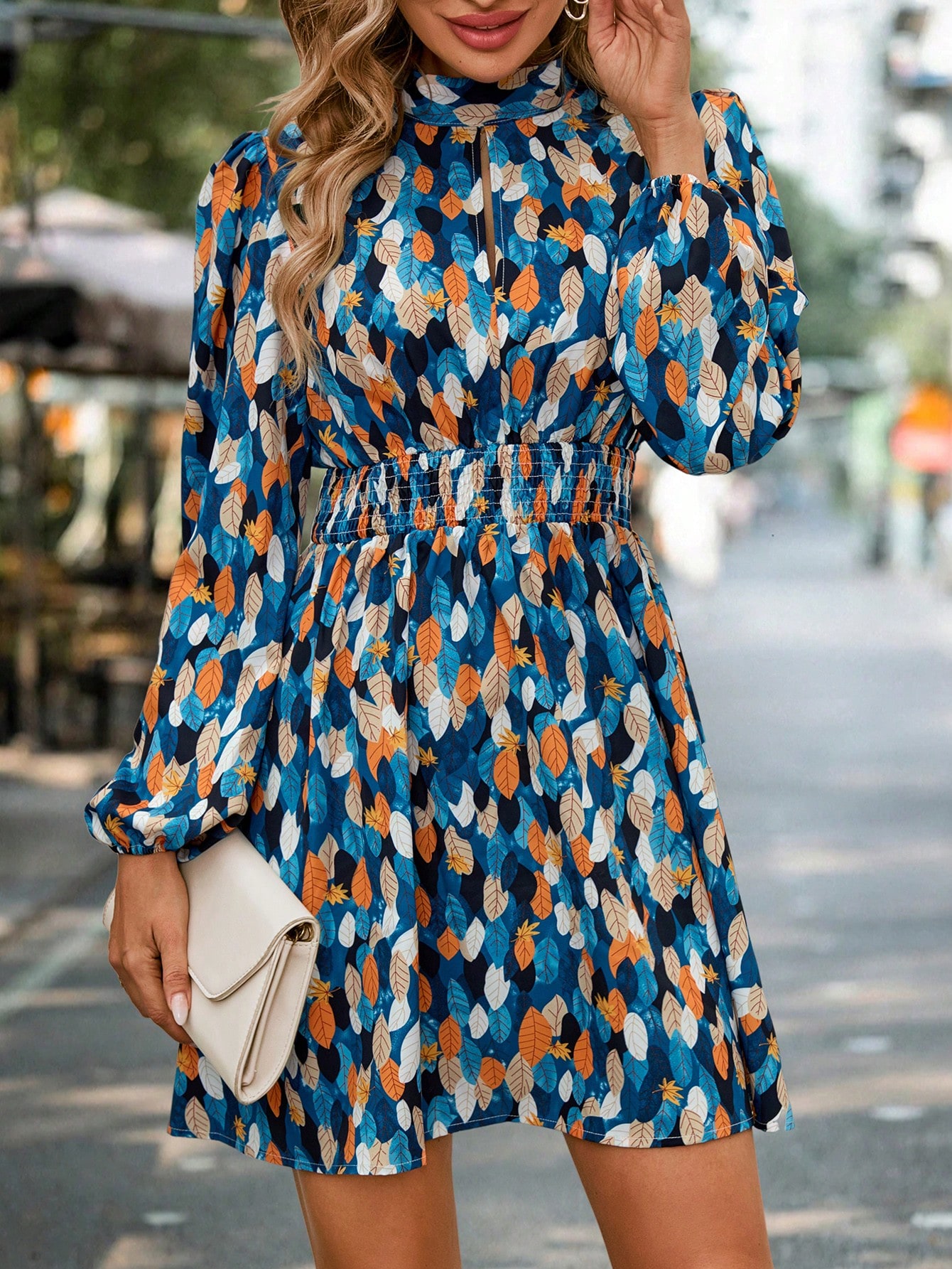 SHEIN VCAY Allover Print Lantern Sleeve Dress