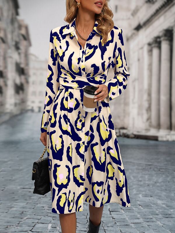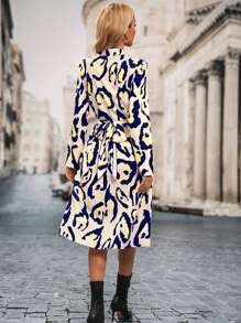 SHEIN LUNE Allover Print Tie Back Shirt Dress