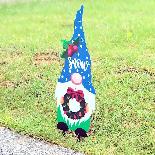 American Style Outdoor Iron Christmas Flower Insert Ground For Courtyard Landscape Decoration Garden Ornament, Santa Claus Holding Gift