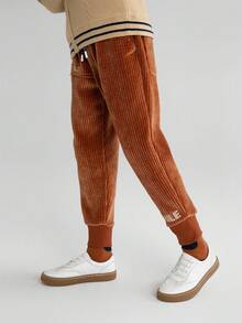 Annil Boys' Knitted Pants Winter Student Comfortable and Warm Corduroy Casual Long Pants brown