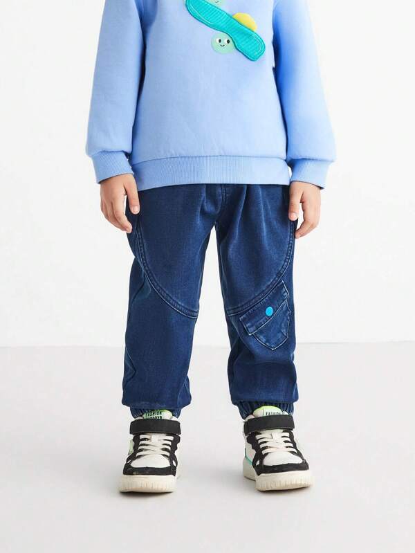 Annil Boys' winter casual warm and loose denim plush thick pants blue