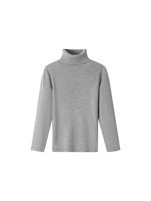 Annil Boys and Girls' High Neck Solid Antibacterial Stretch Long Sleeve Knitted Sweater grey