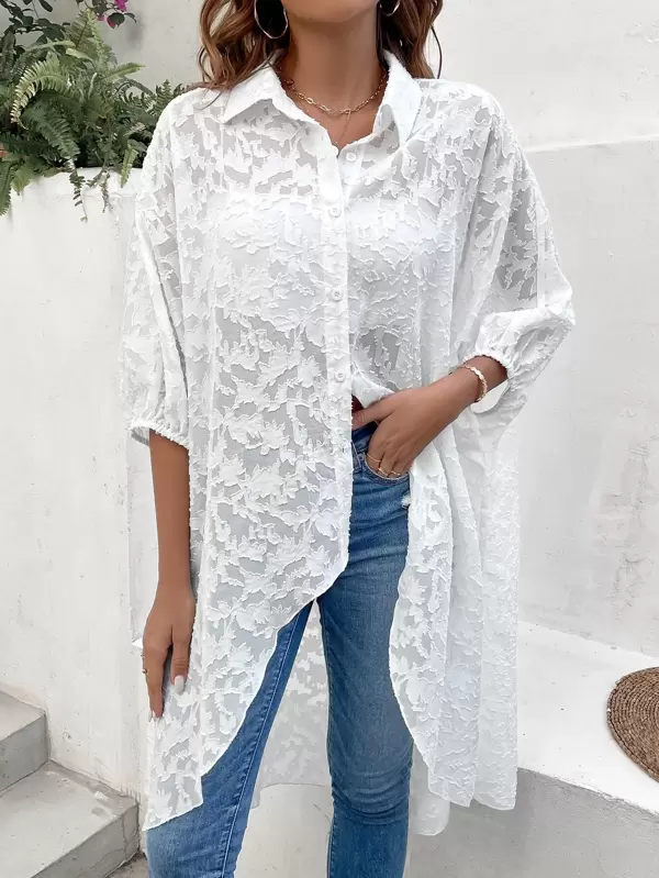 SHEIN VCAY Appliques High Low Batwing Sleeve Chiffon Shirt