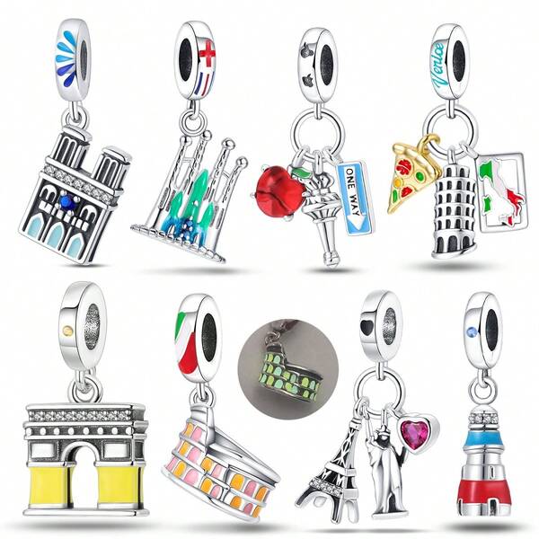 Architecture Series Eiffel Tower, Notre-Dame, Colosseum, Lighthouse Beaded Charm Bracelet For Women, Suitable For 3mm Snake Chain