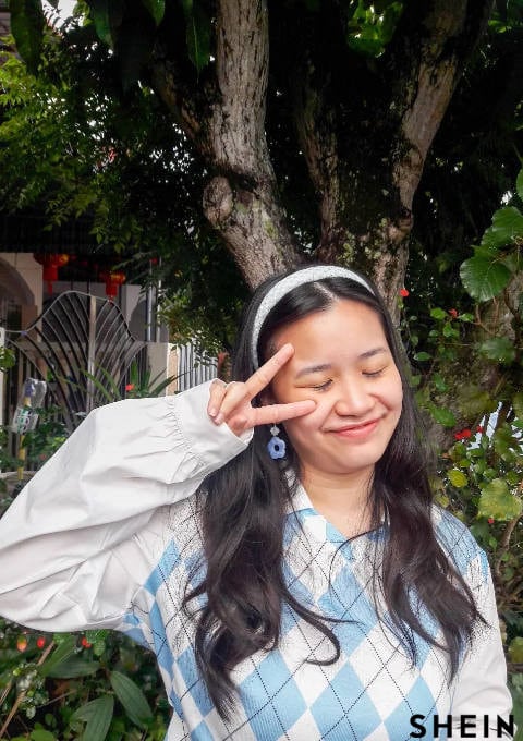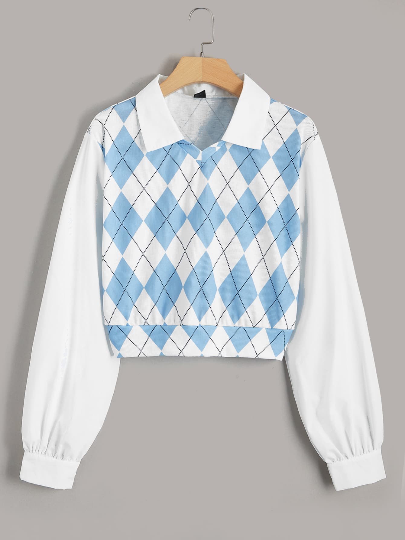 SHEIN Qutie Argyle Print Bishop Sleeve Blouse