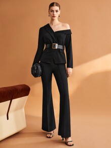 SHEIN BIZwear Asymmetrical Neck Flap Detail Blazer Without Belt