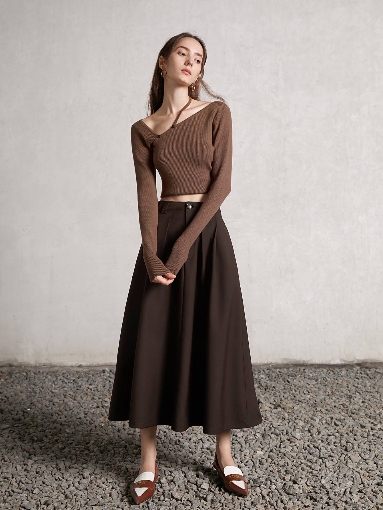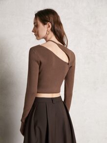 Asymmetrical Neck Ribbed Knit Crop Sweater