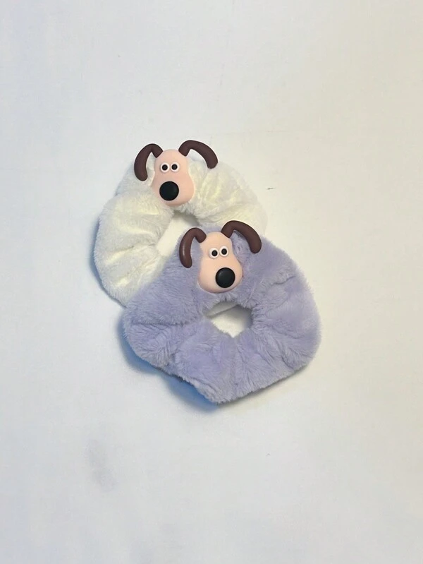 Autumn And Winter Cute Plush Dog Design Hair Ties, New Baby Hair Ties Without Hurting Hair