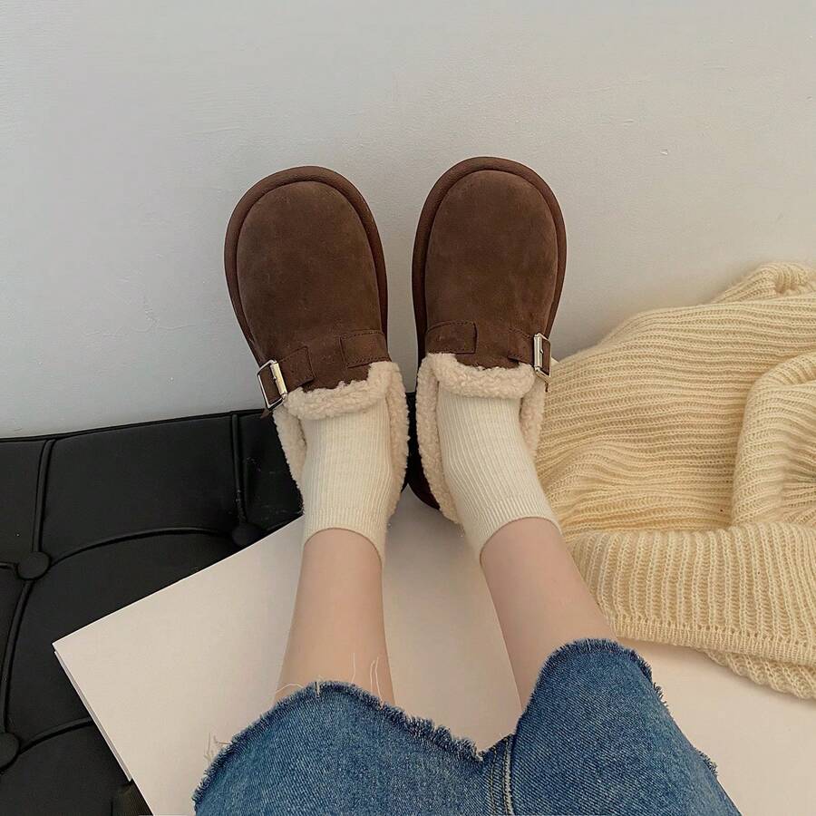 Autumn-winter Women's Plush Slip-on Shoes, New Style, Thickened & Soft & Warm Bottom, Popular Flat Shoes