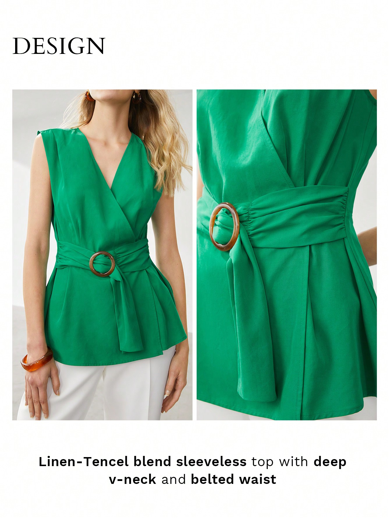 MOTF PREMIUM BELTED LINEN-BLEND BLOUSE