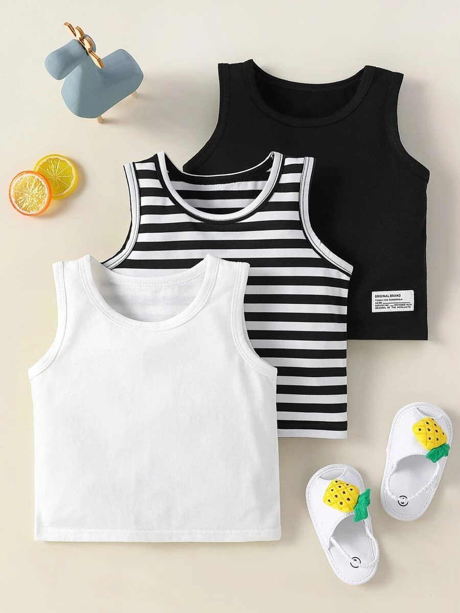 Baby 3pcs Striped Slogan Patched Detail Tank Top