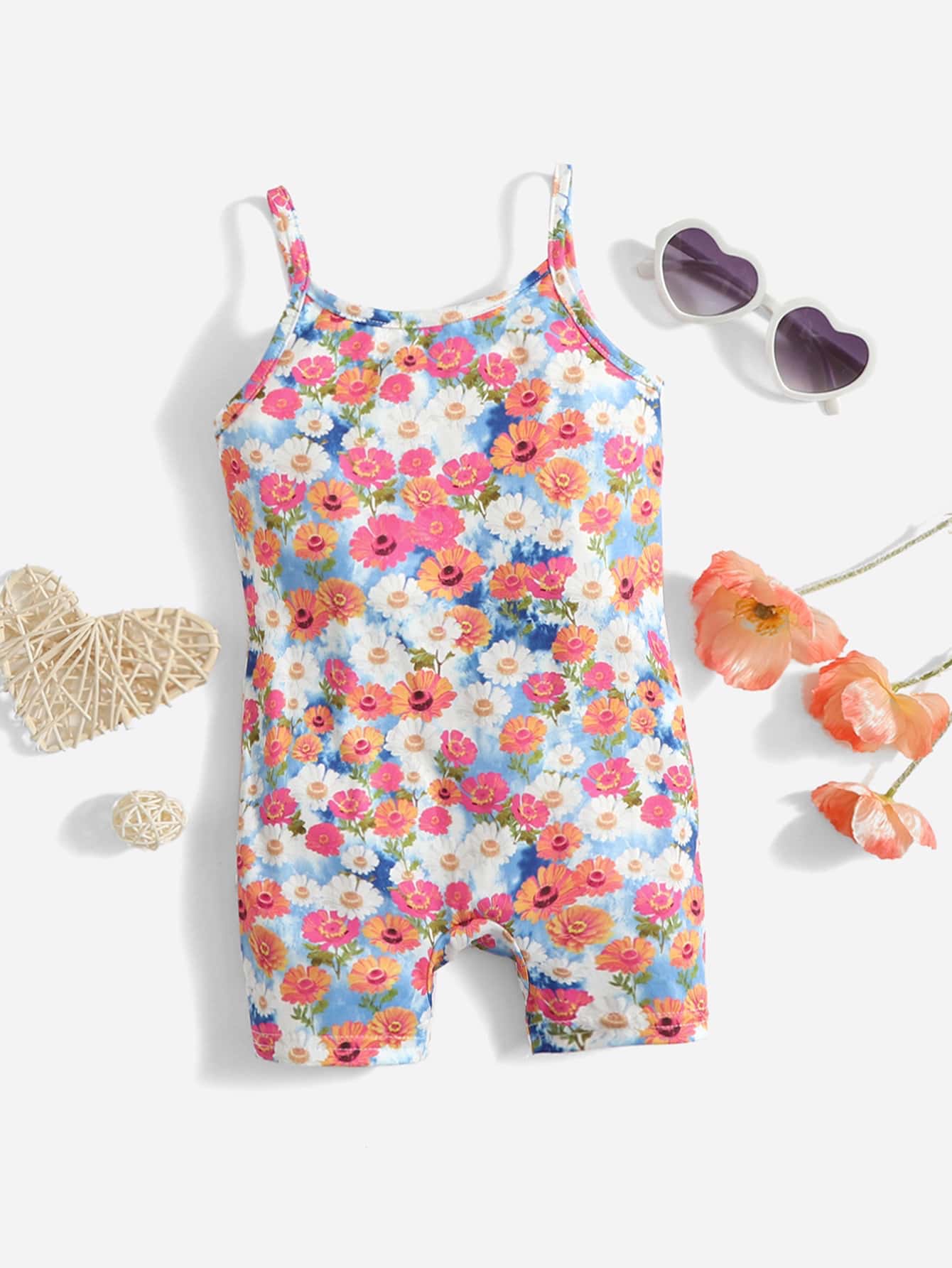SHEIN Baby Allover Floral Print Cami Romper