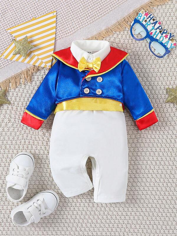 SHEIN Baby Boy 2 In 1 Bow Front Jacket & Jumpsuit Photography Set