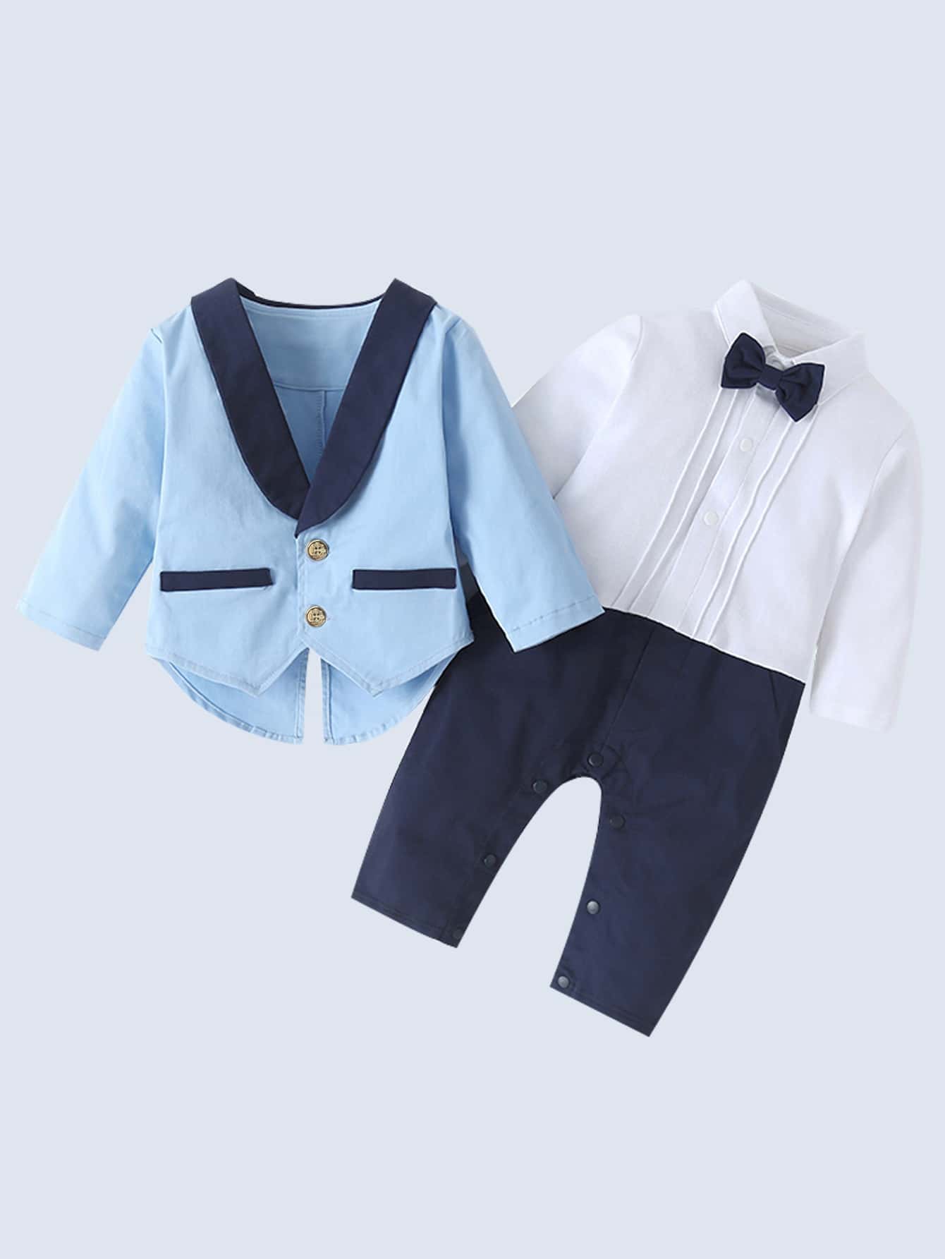 Baby Boy Bow Front Shirt & Pants & Shawl Collar Coat
