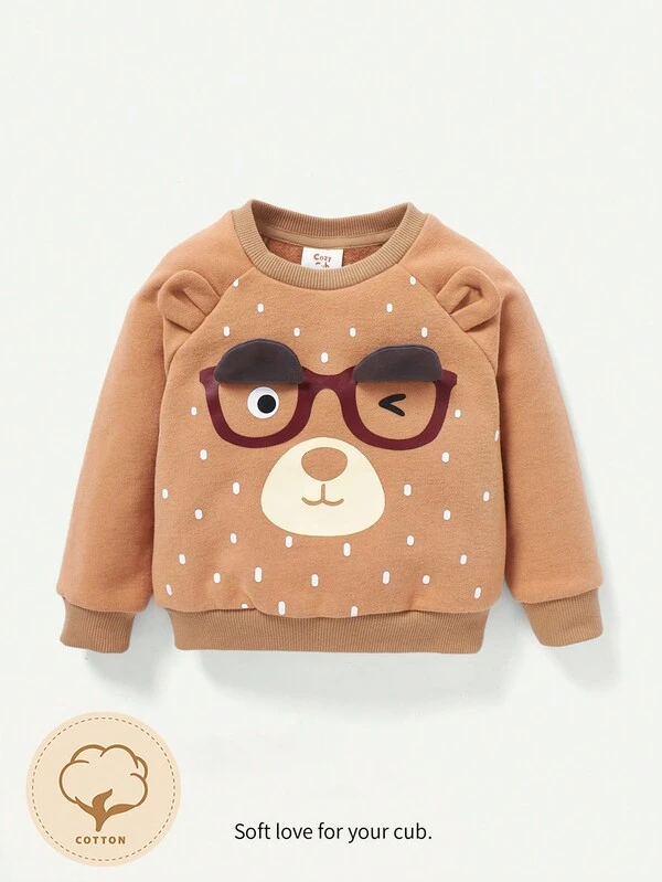 Cozy Cub Baby Boy Cartoon Graphic 3D Ear Design Thermal Lined Sweatshirt