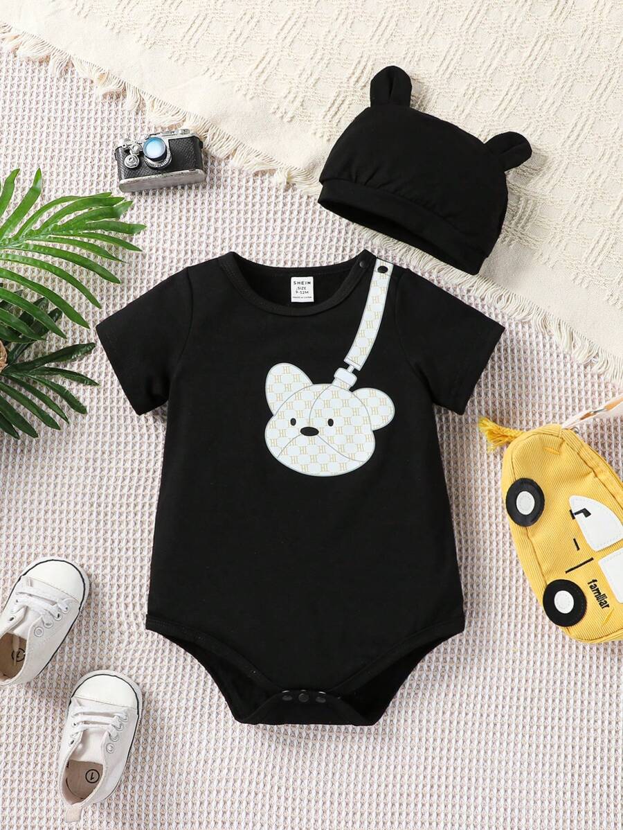 SHEIN Baby Boy Cartoon Graphic Bodysuit & Hat