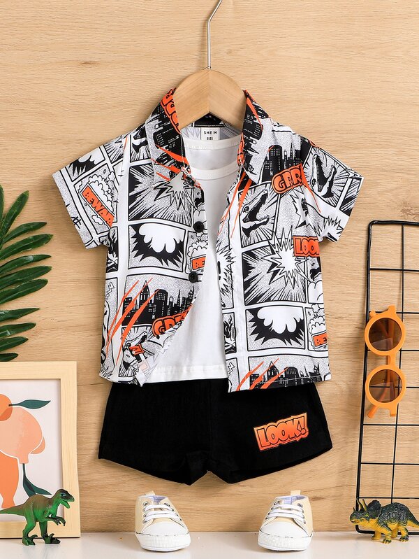 Baby Boy Cartoon Print Shirt & Letter Graphic Shorts Without Tee