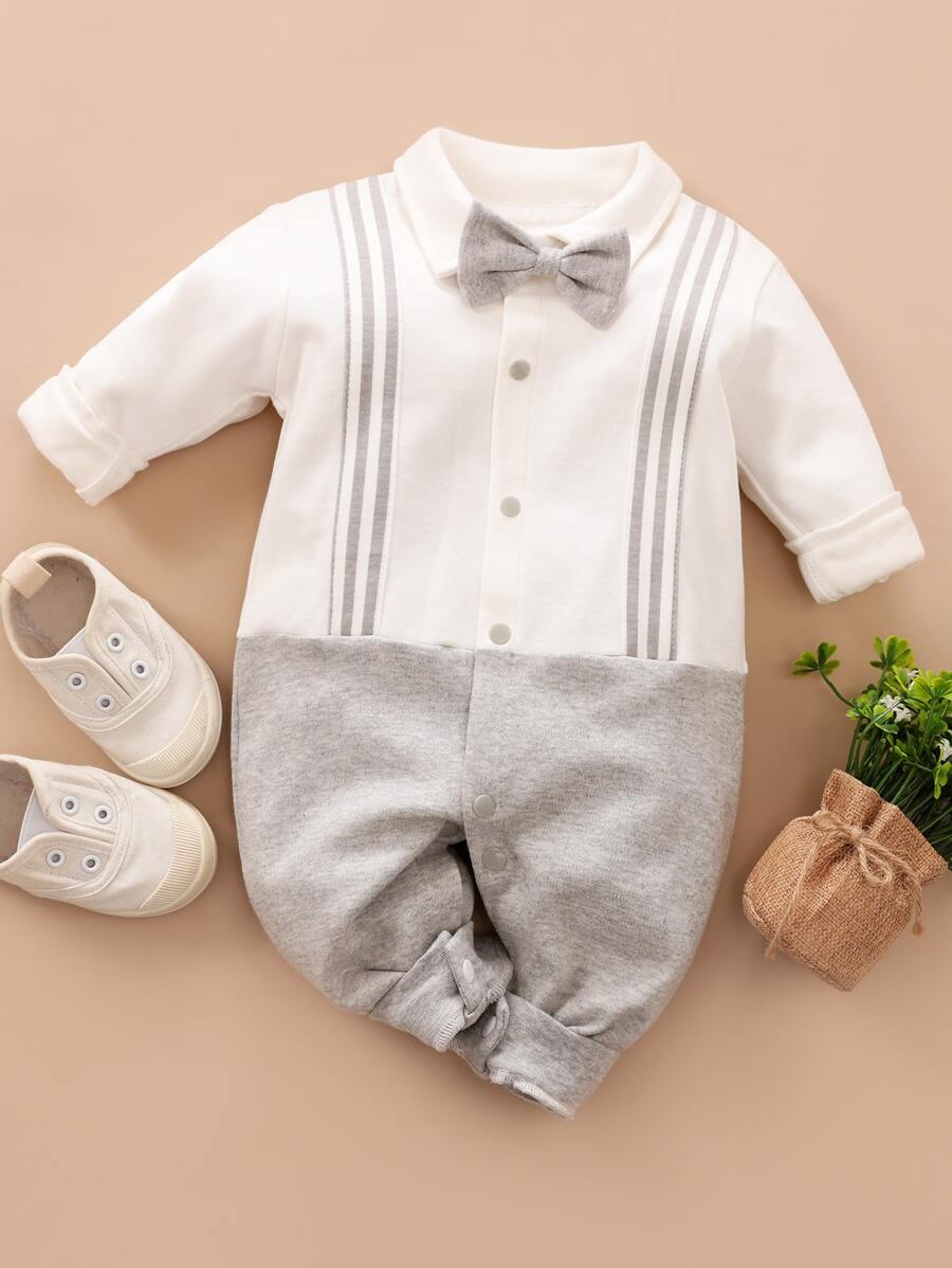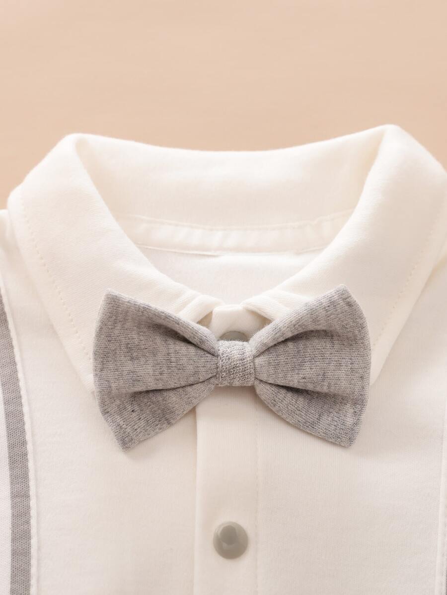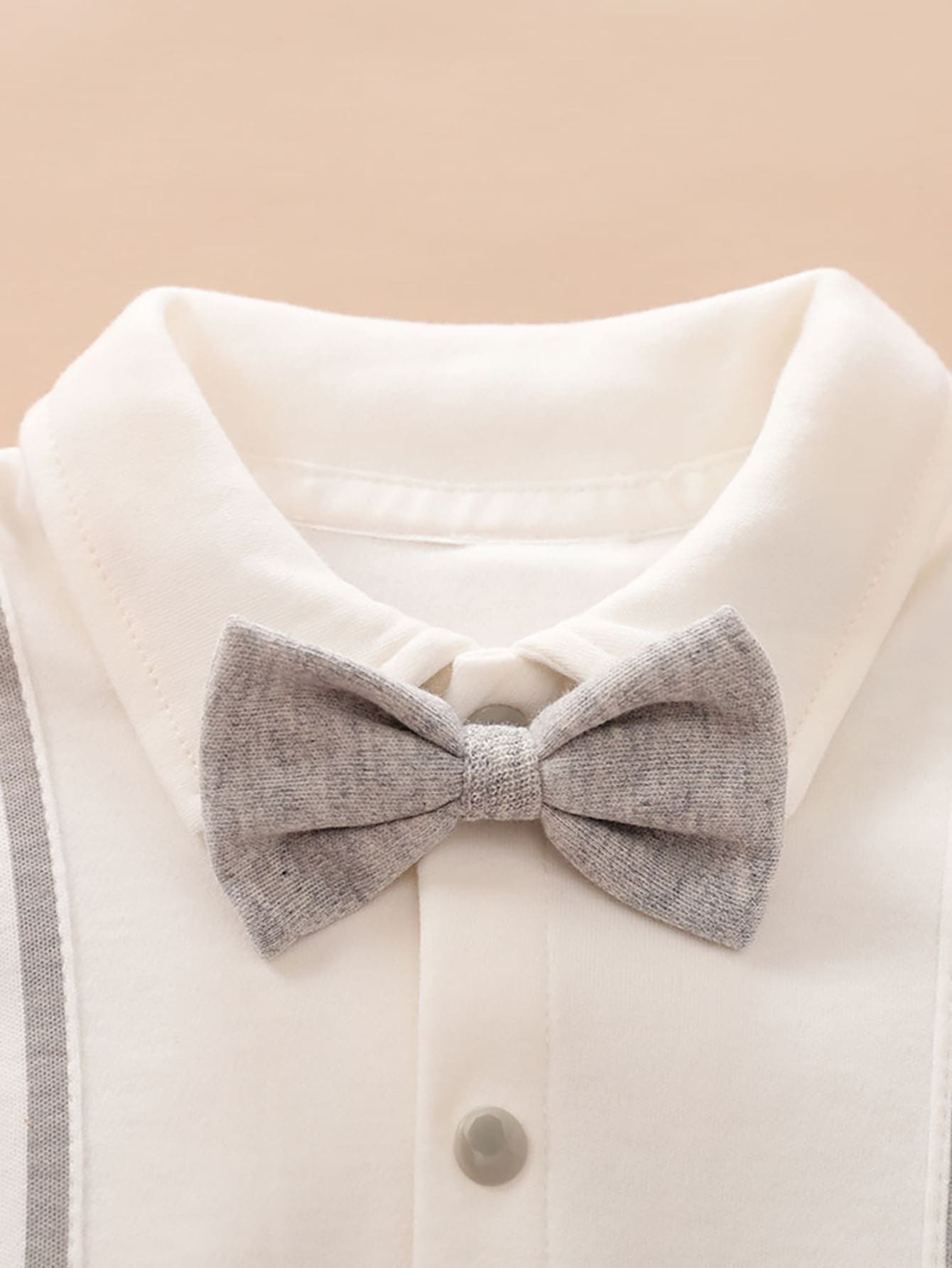 Yierying Baby Boy Color Block Bow Neck Jumpsuit