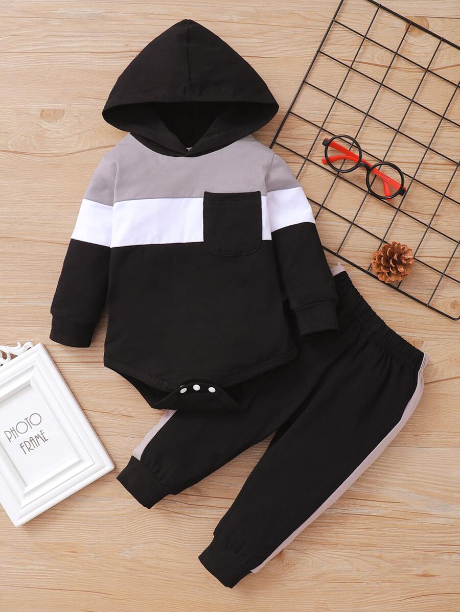 Baby Boy Color Block Hooded Bodysuit & Sweatpants