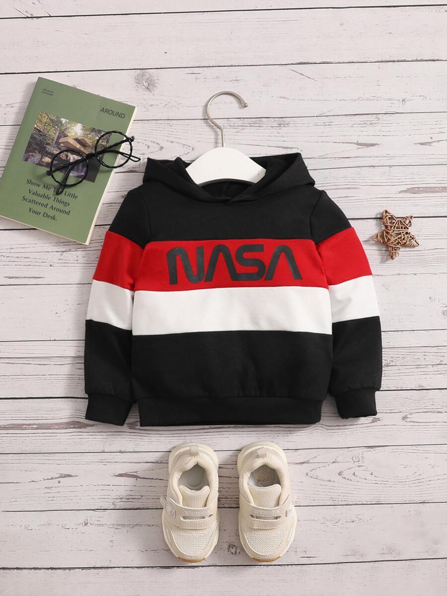 SHEIN Baby Boy Letter Graphic Colorblock Hoodie