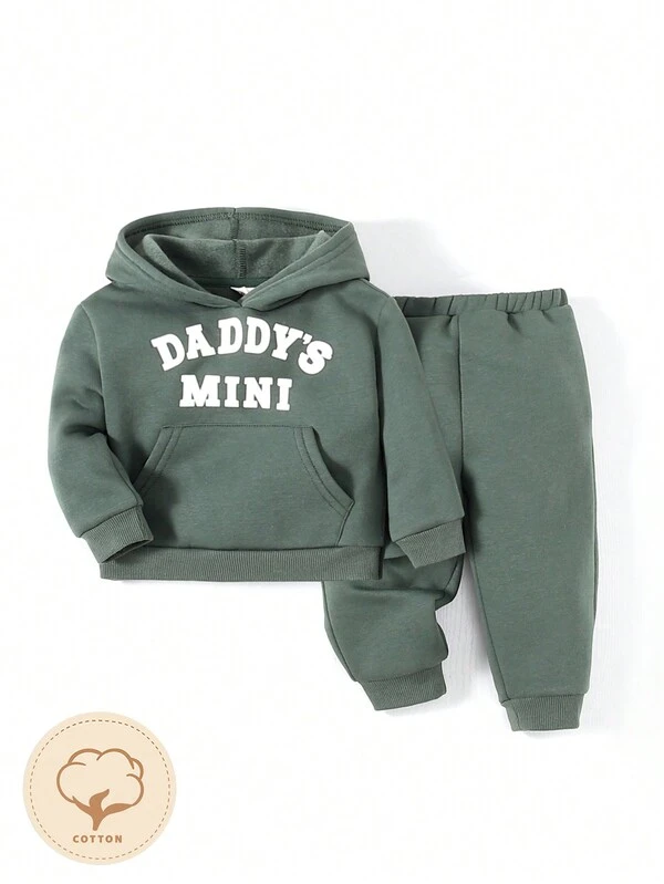 Cozy Cub Baby Boy Letter Graphic Kangaroo Pocket Hoodie & Sweatpants