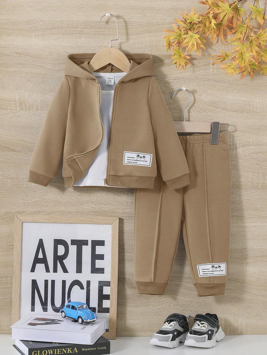 SHEIN Baby Boy Letter Patched Detail Hooded Sweatshirt & Sweatpants Without Tee