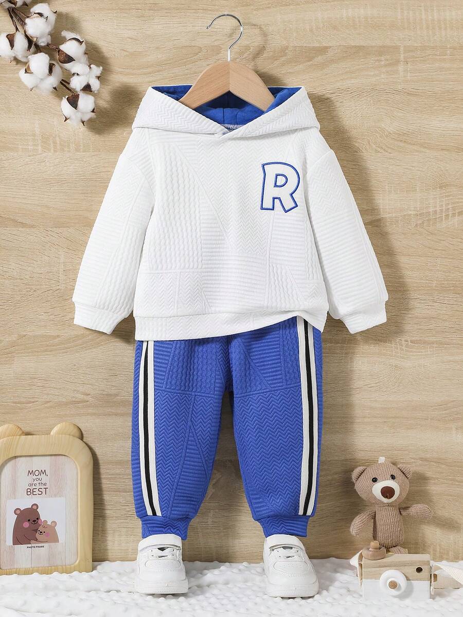 SHEIN Baby Boy Letter Patched Drop Shoulder Hoodie & Contrast Tape Sweatpants