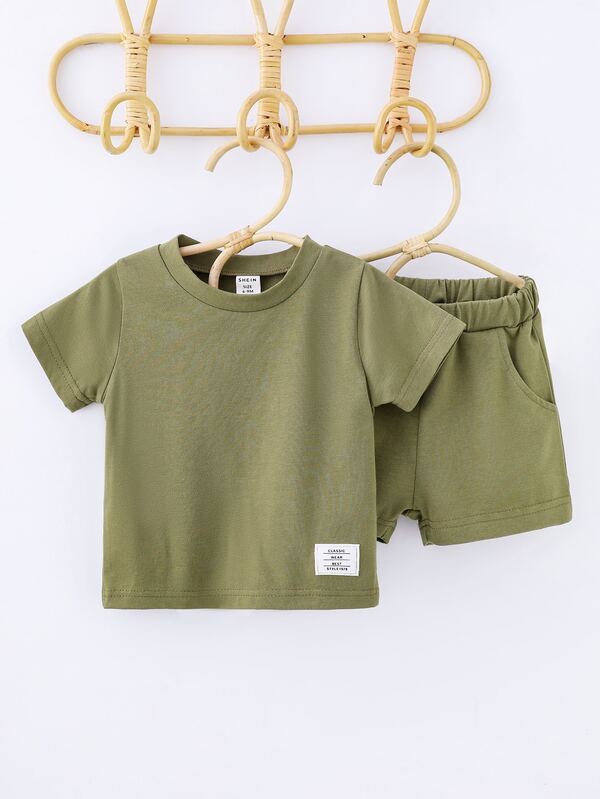 Baby Boy Letter Patched Tee With Track Shorts