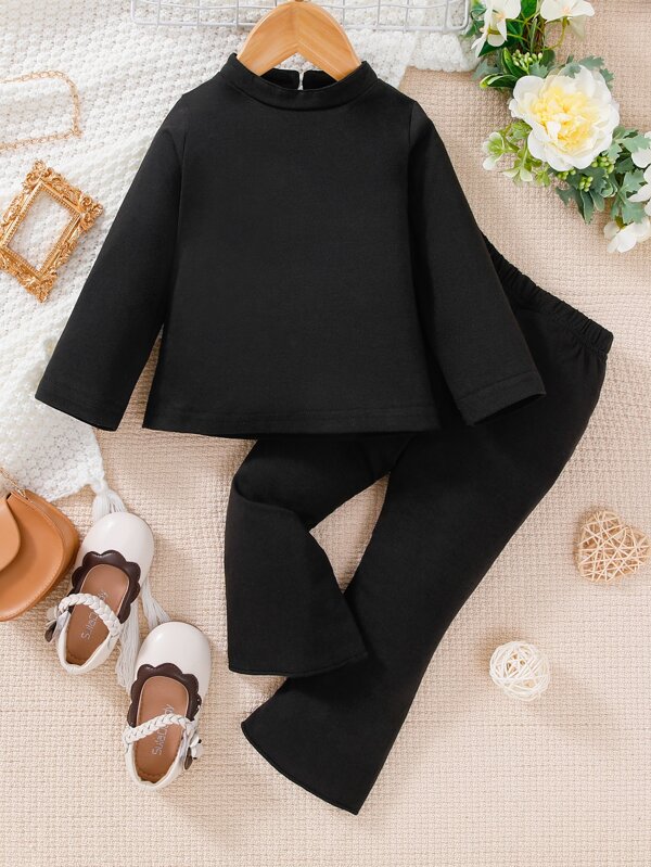 Baby Boy Mock Neck Keyhole Back Tee & Flare Leg Pants