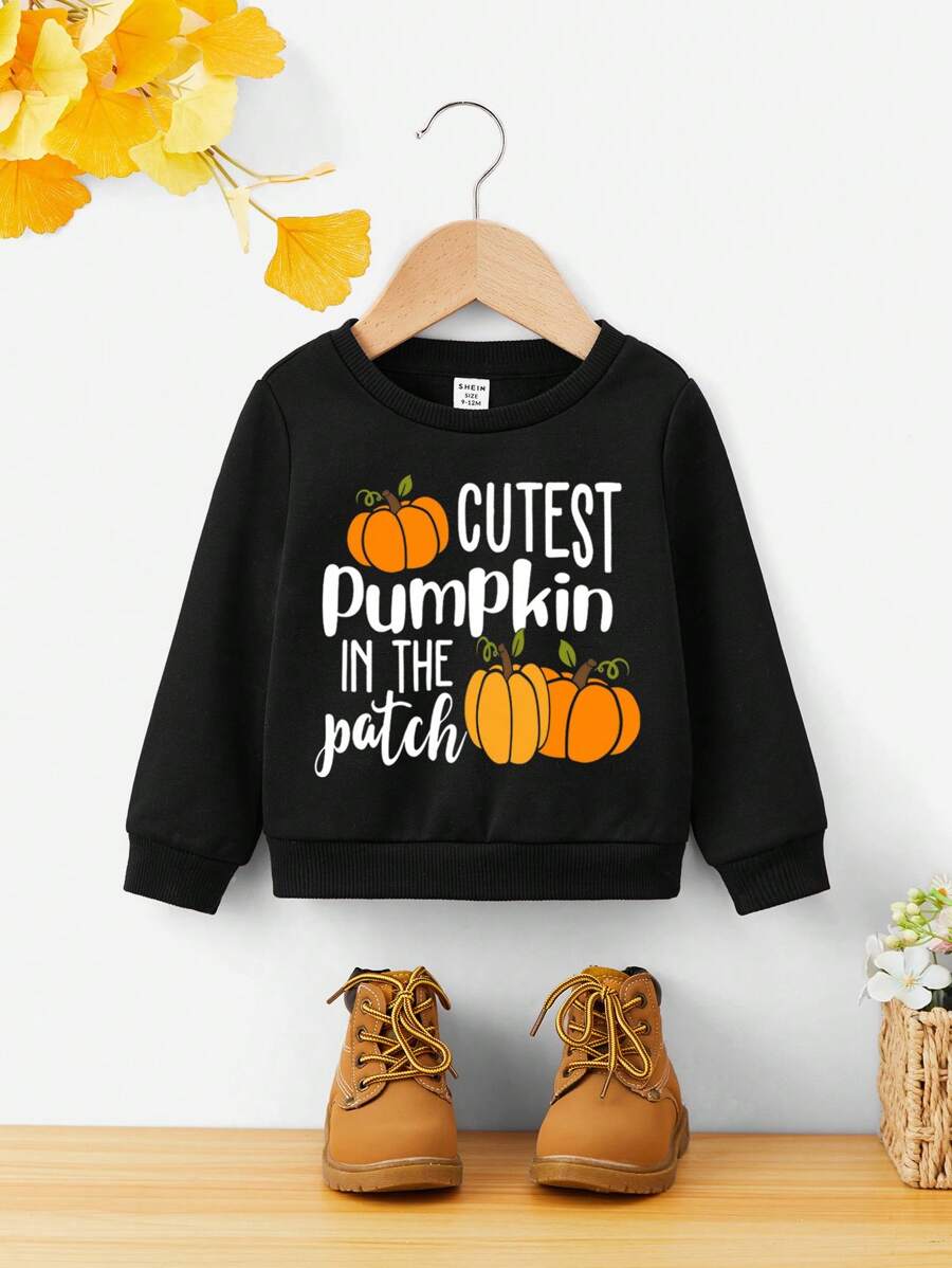Baby Boy Pumpkin & Slogan Graphic Thermal Sweatshirt