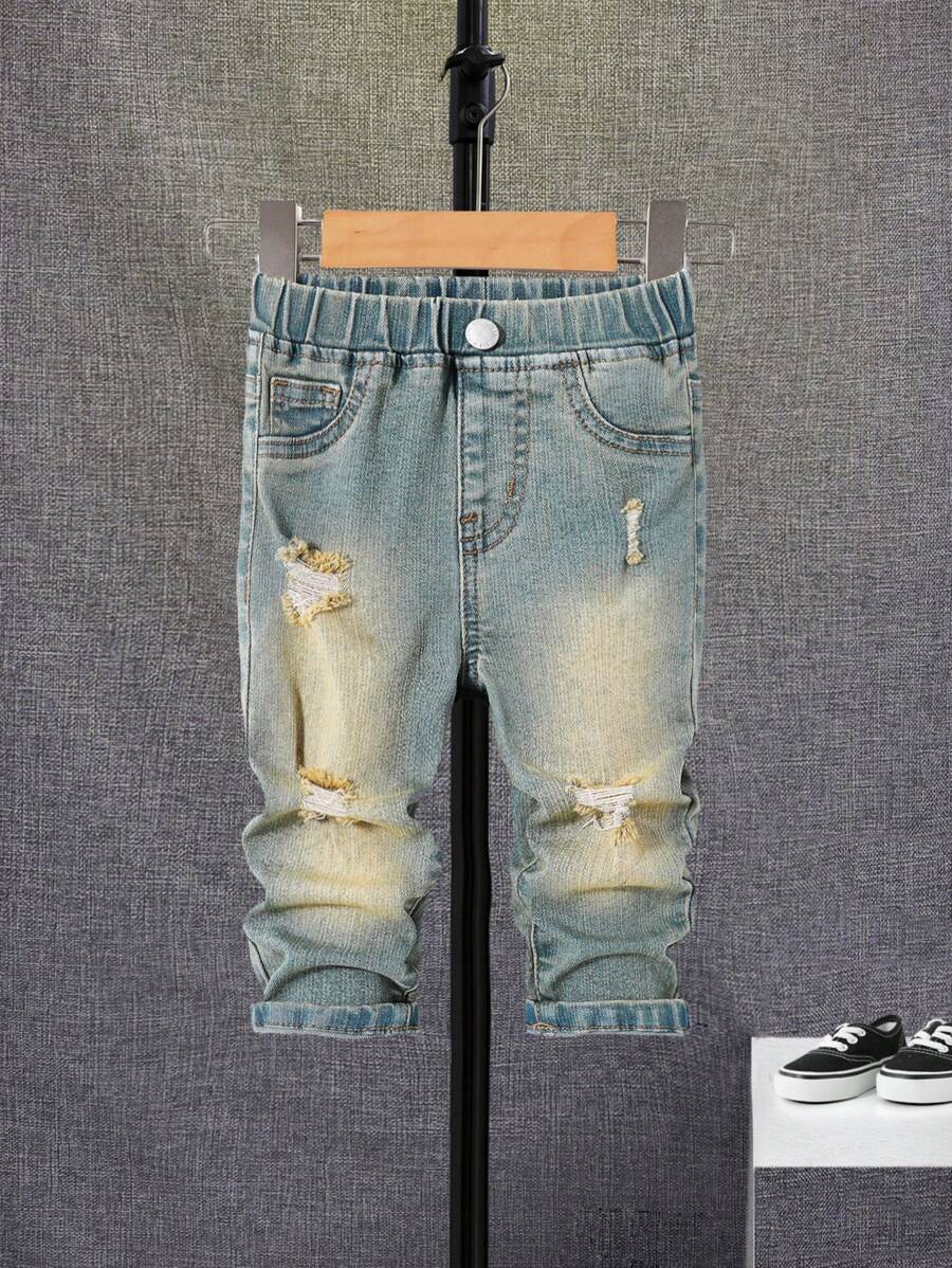 SHEIN Baby Boy Ripped Frayed Bleach Wash Jeans