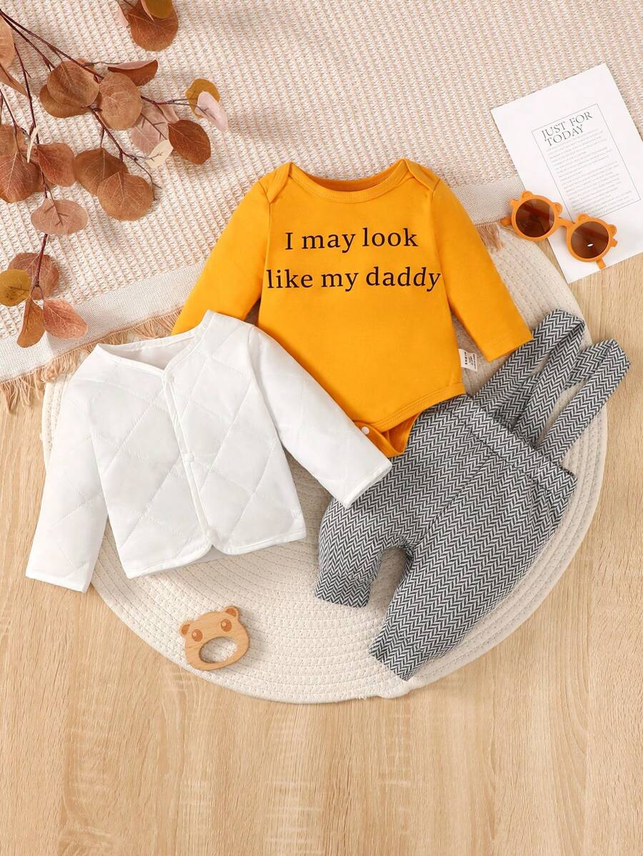 SHEIN Baby Boy Slogan Graphic Bodysuit & Overalls & Coat