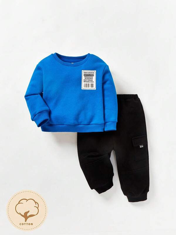 Cozy Cub Baby Boy Slogan Graphic Sweatshirt & Flap Pocket Sweatpants