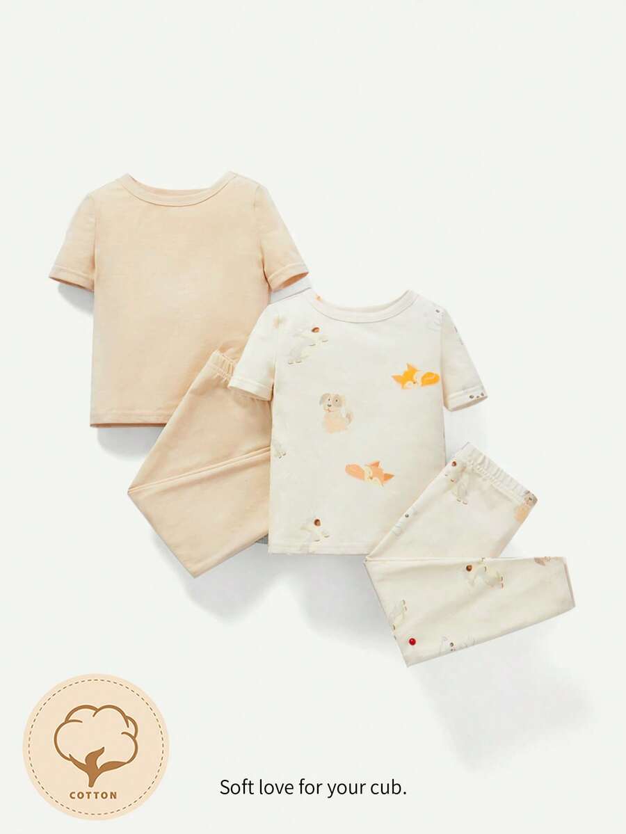 Cozy Cub Baby Boy Snug Fit Pajamas Fun Cartoon Animal Pattern Top And Pants Set, Crew Neck, Long Sleeve, Four Pieces