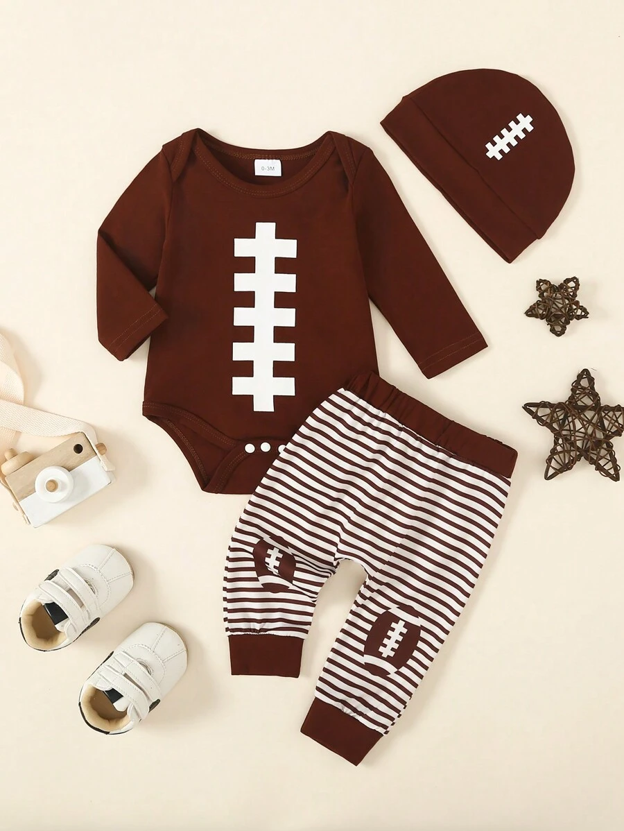 Baby Boy Striped Bodysuit & Sweatpants & Hat