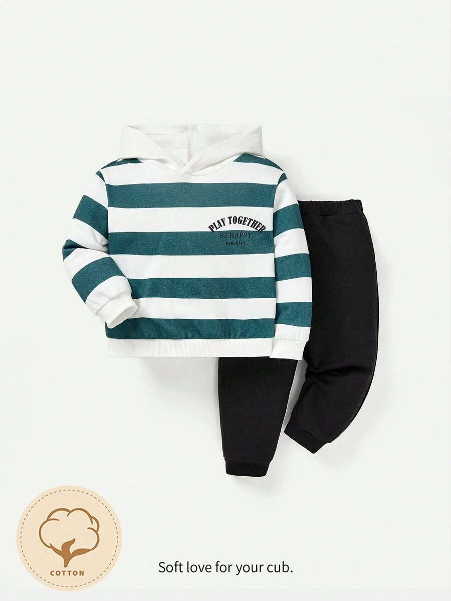 Cozy Cub Baby Boy Striped Letter Graphic Hoodie & Sweatpants